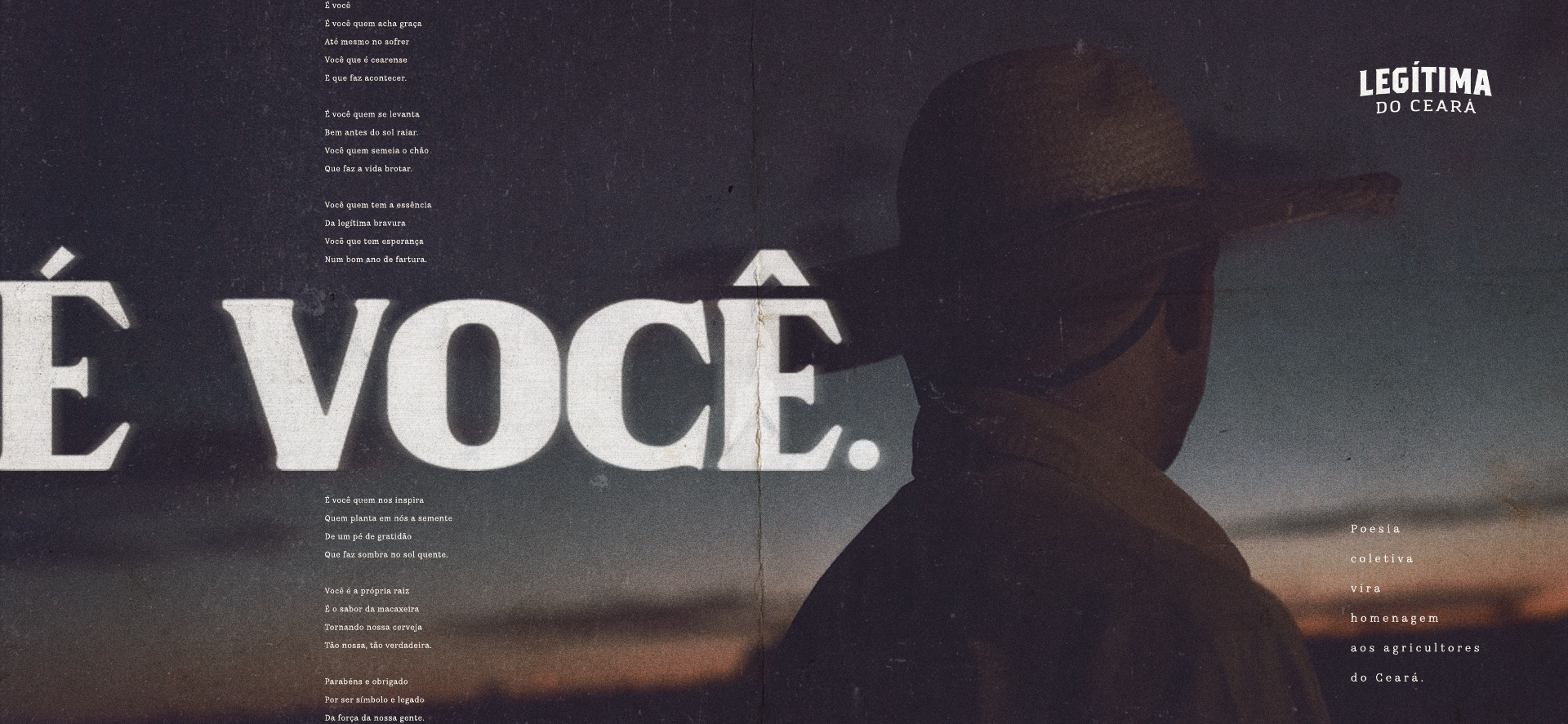 Está nos cordéis, nas xilogravuras, na música: a veia poeta cearense faz parte da cultura local. Ela se expressa com mais força no interior e fala de todos os assuntos, mas um em especial: o homem do campo. Aproveitamos isso para convidar as pessoas a prestarem uma homenagem aos agricultores através de uma poesia coletiva no Instagram. Cada comentário virou R$ 4,00 de doação e também inspiração para o poema do Bráulio Bessa.